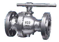 Válvula de esfera, passagem plena, em aço carbono fundido ASTM A 216 Grau WCB, classe 600 lb; flanges padrão ANSI B16.5; face com ressalto; face a face padrão ANSI B16.10; esfera em aço inoxidável.